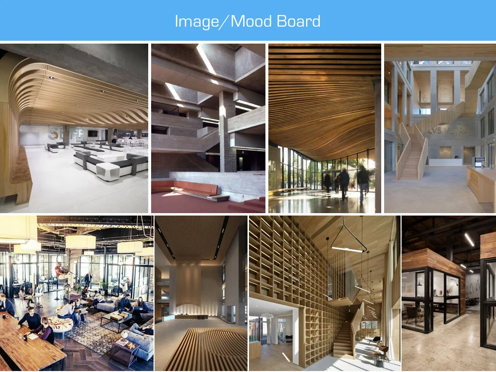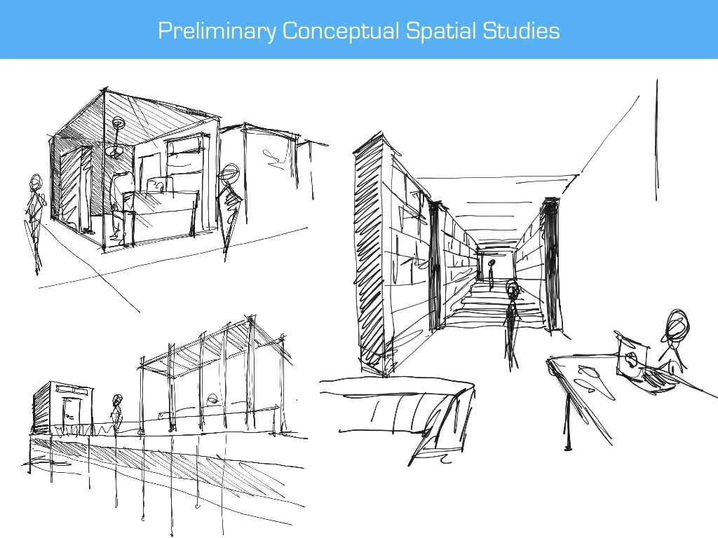 Sketch of perspectives /May 4, 2017 by Theo Guo Sketches of office rental space, retail hall way and roof top garden. Image/Mood Board