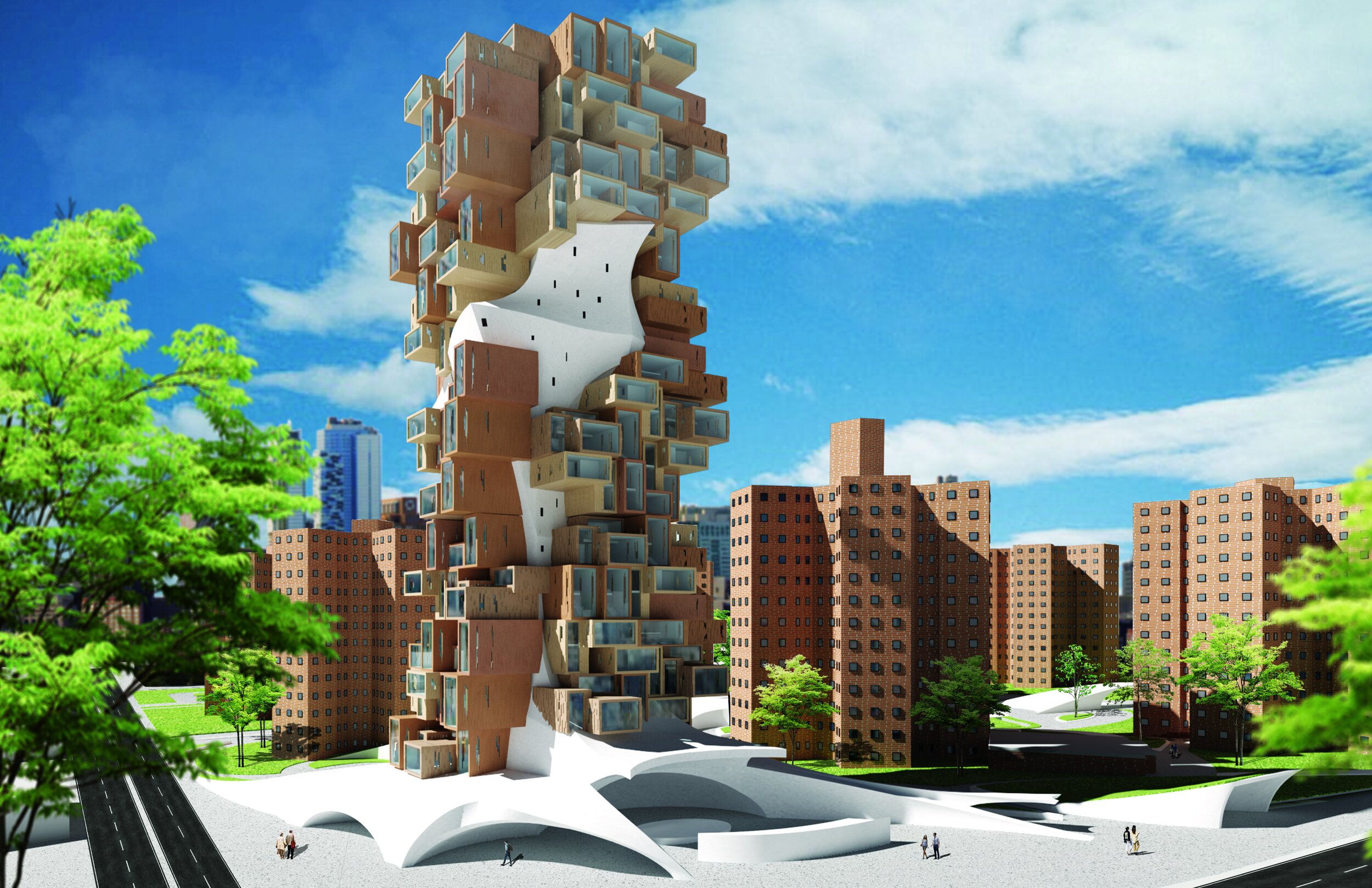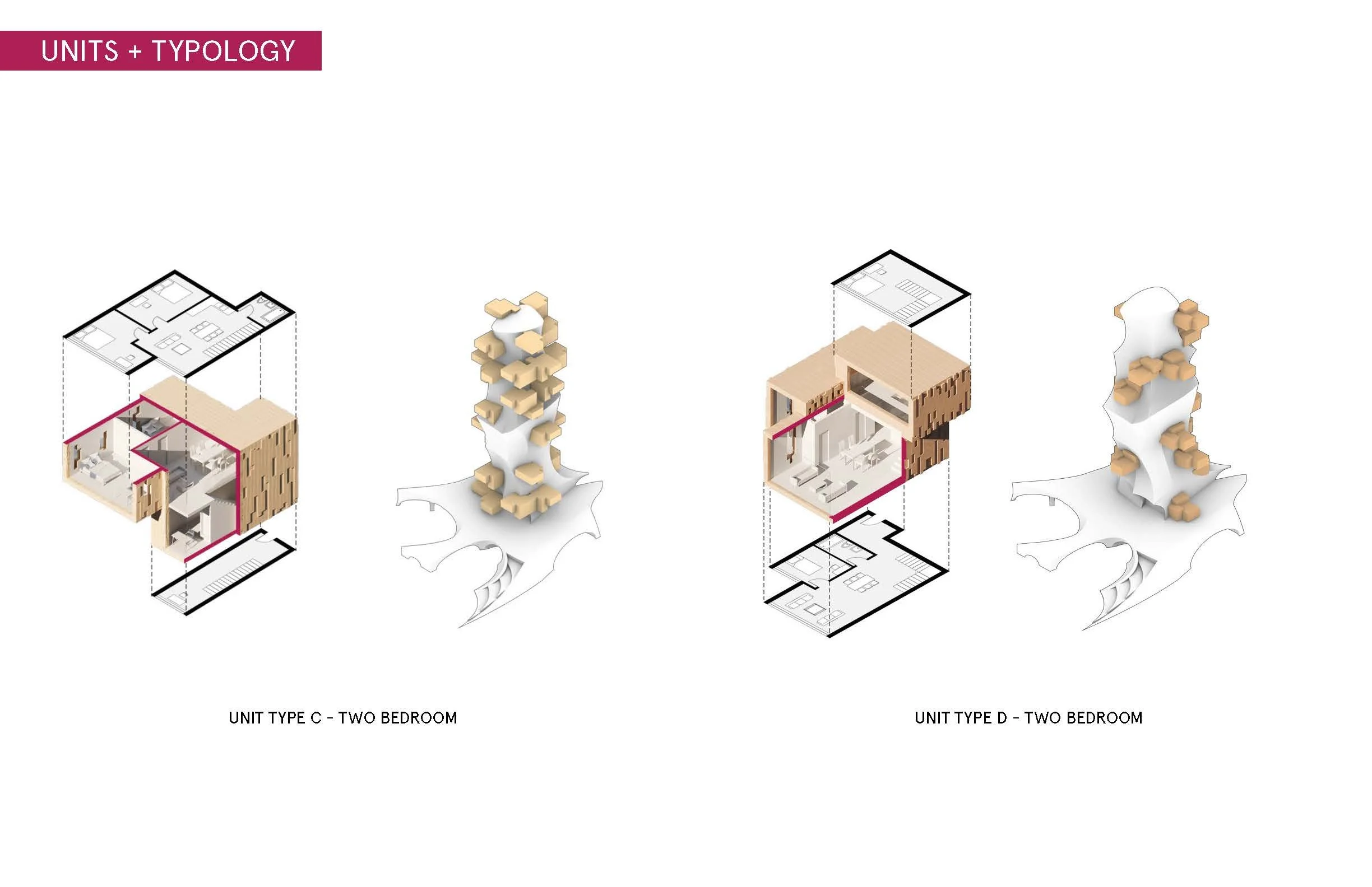 The two systems were then translated into two distinct structures that were combined together at the selected site, one as the stacking of units and another as an organic shape containing public space and circulations.