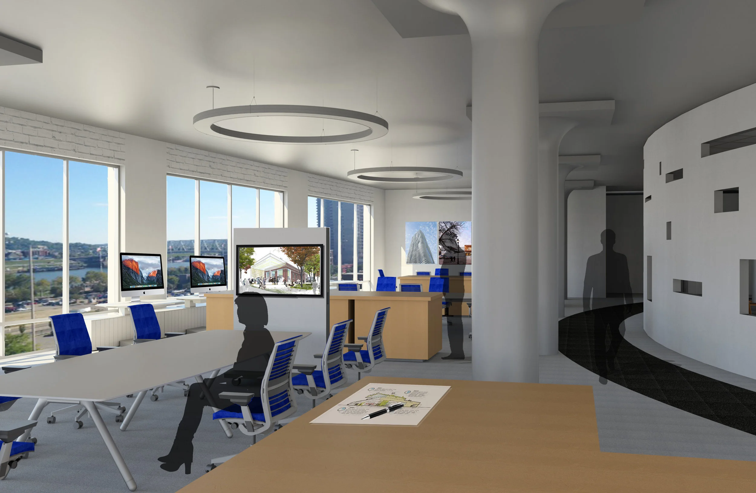 My first senior project was a workplace design project. In this project, I contacted Studio Gang Architects and held phone meetings with the Studio Design Directer at their Chicago Office, while also researching the company on my own. The result of the project was this design for a Cincinnati-based office.